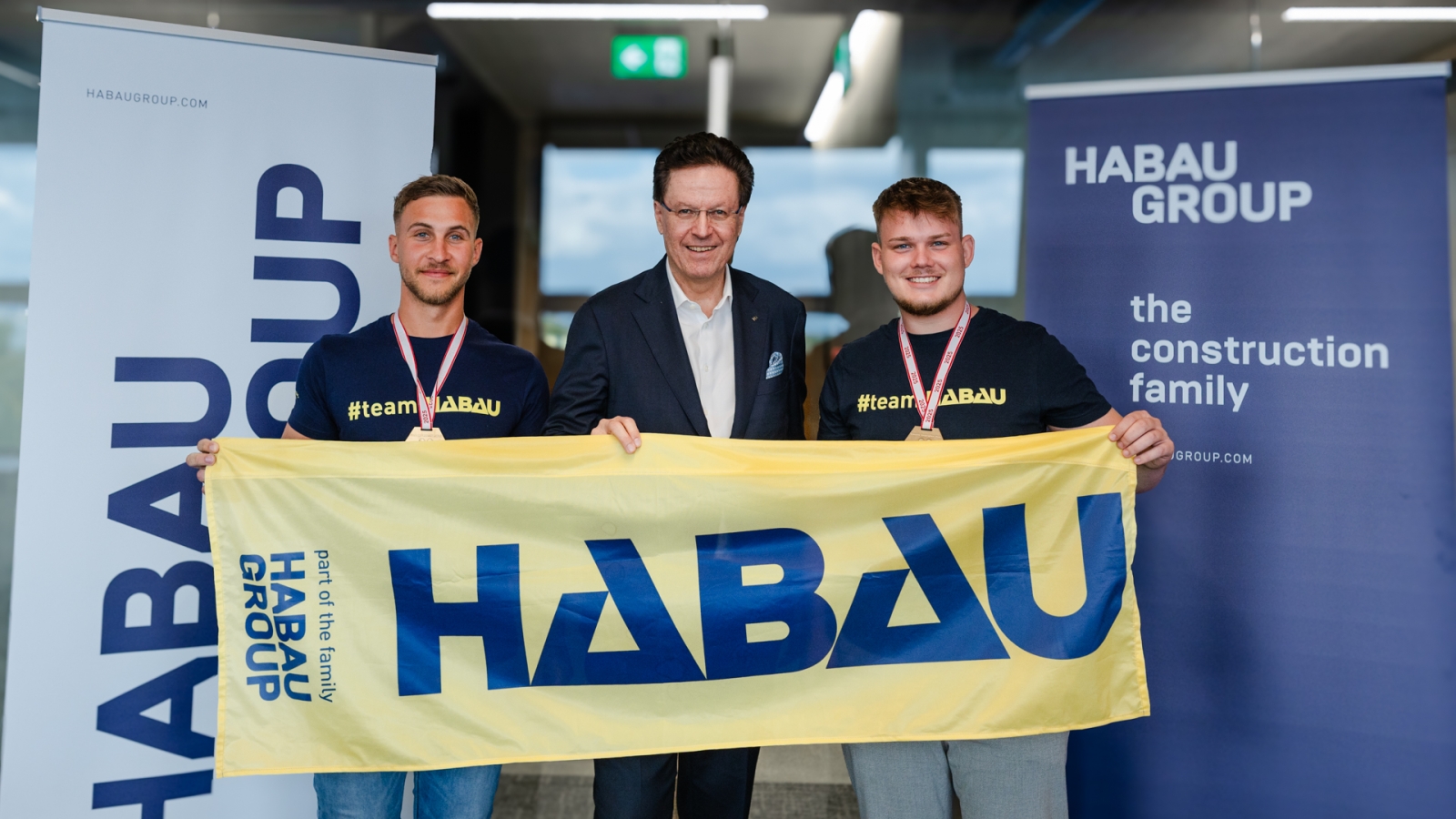 “Lukas Miedler’s and Lukas Ritzberger’s success shows the enormous potential that is inside our young skilled workers”. With these words, yesterday Hubert Wetschnig, CEO of the HABAU GROUP congratulated HABAU specialists Lukas Miedler from Horn (Lower Austria) and Lukas Ritzberger from Enns (Upper Austria) on their win at the EuroSkills 2025. The up-and-coming talents managed to secure the gold medal in the category “concrete construction” at the European vocational championships in Herning, Denmark.